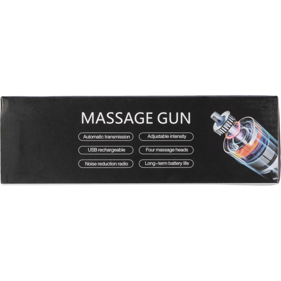 Masażer mięśni z silnikiem szczotkowym (prędkość 1800 - 3200 obr/min) i akumulatorem 1200 mAh, wejście 5V, 6 poziomów intensywności masażu mięśni, pomaga zrelaksować się po stresującym dniu, zawiera 4 końcówki masujące, pudełko podarunkowe w komplecie, produkt wykonany z ABS