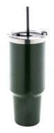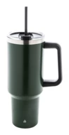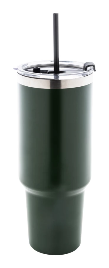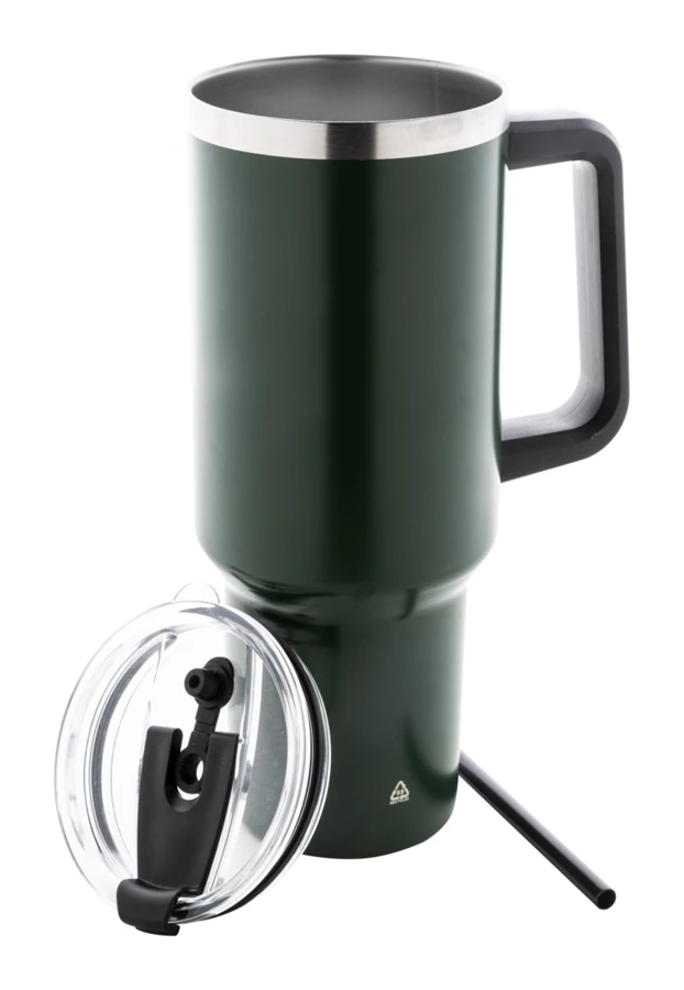 Kubek termiczny z podwójną ścianką, izolowany próżniowo, wykonany ze stali nierdzewnej z recyklingu, z pokrywką z polistyrenu (PS) i słomką z polipropylenu (PP). 1200 ml.