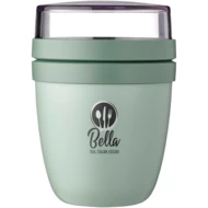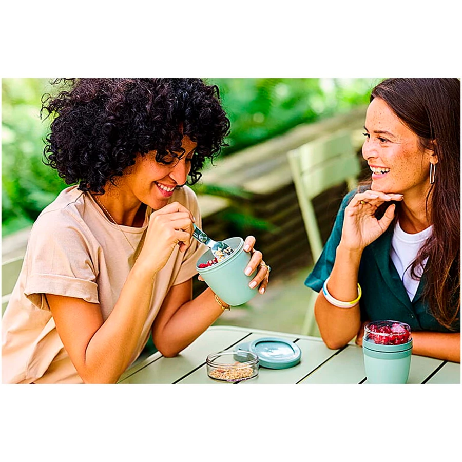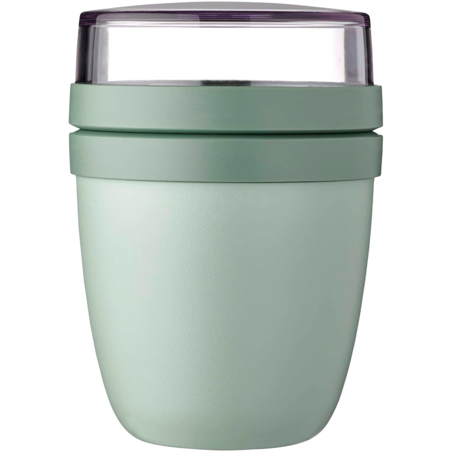 Pojemnik na lunch Ellipse Mini idealnie nadaje się do przechowywania przekąsek, np. jogurtu z musli lub zupy z grzankami. Dzięki dwóm inteligentnym przegródkom w jednym wytrzymałym pojemniku Twoje produkty będą zawsze starannie oddzielone. Jego kompaktowy rozmiar sprawia, że idealnie mieści się w plecaku szkolnym, dzięki czemu można go w niego wygodnie zapakować przekąski na szybki posiłek. Górny przezroczysty pojemnik ma pojemność 120 ml, idealną na około 50 gramów musli lub owoców, a dolny pojemnik ma pojemność 300 ml. Pojemnik jest szczelny i można go myć w zmywarce. Wolne od BPA.