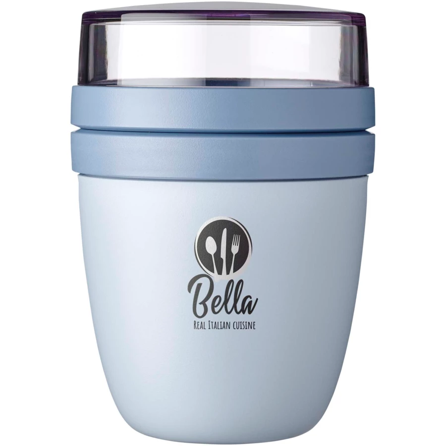 Pojemnik na lunch Ellipse Mini idealnie nadaje się do przechowywania przekąsek, np. jogurtu z musli lub zupy z grzankami. Dzięki dwóm inteligentnym przegródkom w jednym wytrzymałym pojemniku Twoje produkty będą zawsze starannie oddzielone. Jego kompaktowy rozmiar sprawia, że idealnie mieści się w plecaku szkolnym, dzięki czemu można go w niego wygodnie zapakować przekąski na szybki posiłek. Górny przezroczysty pojemnik ma pojemność 120 ml, idealną na około 50 gramów musli lub owoców, a dolny pojemnik ma pojemność 300 ml. Pojemnik jest szczelny i można go myć w zmywarce. Wolne od BPA.