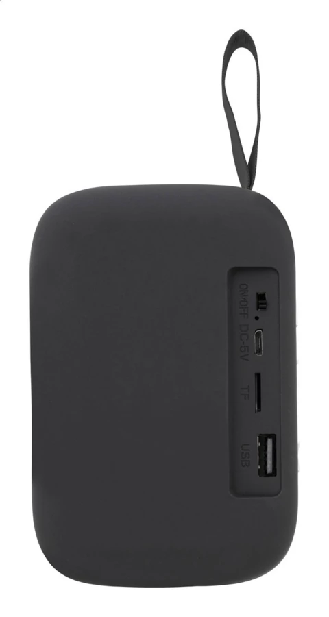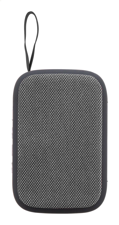 Bezprzewodowy głośnik w plastikowej obudowie z poliestrową tkaniną głośnikową i wbudowanym akumulatorem (250 mAh). W zestawie kabel USB do ładowania.