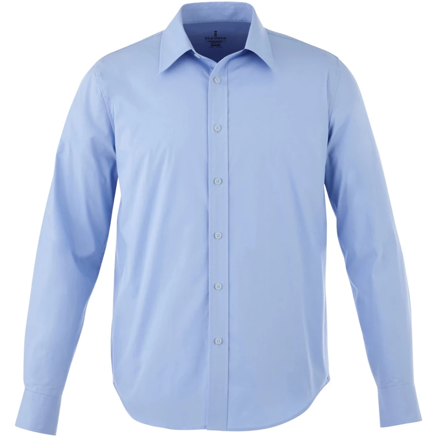 Męska koszula Hamell z długim rękawem - idealne połączenie stylu i wygody. Ta tkana koszula wykonana jest z lekkiej tkaniny popelinowej z 97% bawełny i 3% elastanu. Tkanina popelinowa jest znana z ciasnego splotu, który zapewnia wyjątkową trwałość, zachowując jednocześnie miękką i gładką teksturę na skórze. Oznacza to, że koszulka Hamell jest nie tylko wygodna w noszeniu, ale także odporna na codzienne zużycie, zapewniając długotrwałe użytkowanie. Dodatkowa rozciągliwość zapewnia najwyższą swobodę ruchów, zapewniając optymalny komfort przez cały dzień. Ukryty kołnierzyk zapinany na guziki dodaje wyrafinowania, zachowując jednocześnie czysty wygląd.
