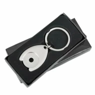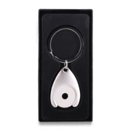 Wykonany z metalu brelok z żetonem. Żeton o wielkości 1 zł / 1 EUR. Pakowany w czarne kartonowe opakowanie upominkowe.