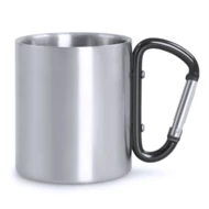 Kubek 210 ml z karabińczykiem umożliwiającym przypinanie, posiada podwójne ścianki, które spowalniają oddawanie temperatury na zewnątrz, produkt wykonany ze stali nierdzewnej