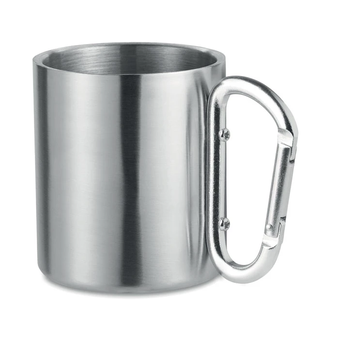Kubek ze stali nierdzewnej, z uchwytem w postaci karabinka. Posiada podwójne ścianki. Pojemność: 220ml.