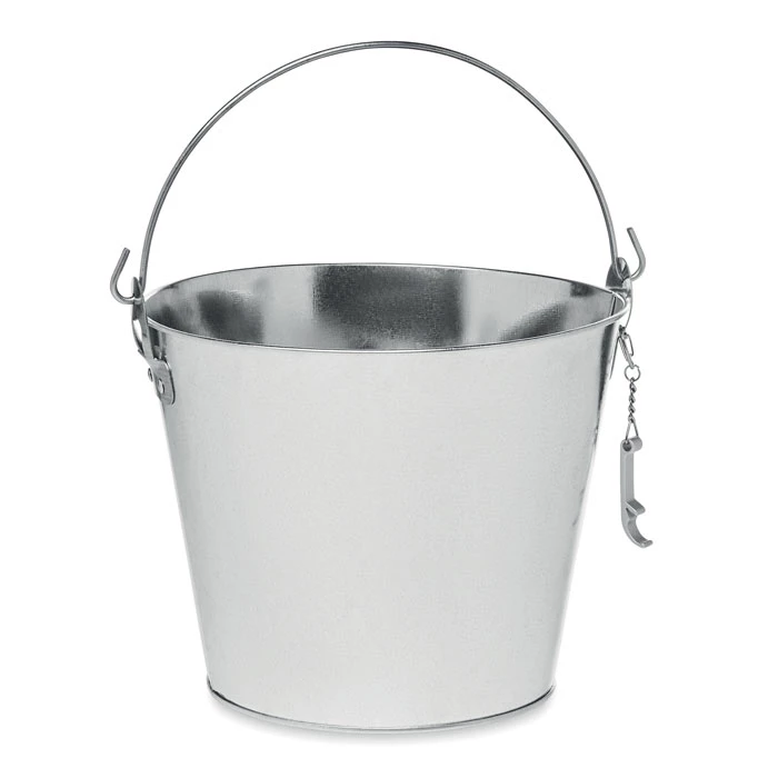 Metalowy kubełek na piwo lub inne napoje z uchwytem i z otwieraczem do butelek. Pojemność: 4 L.