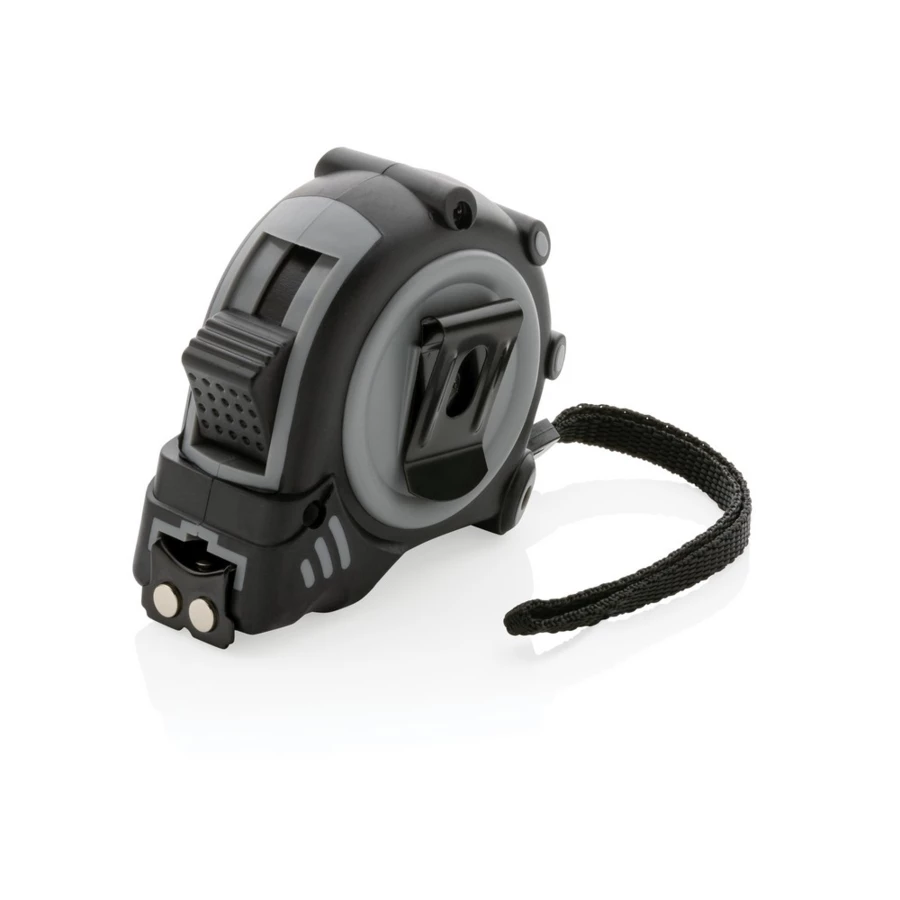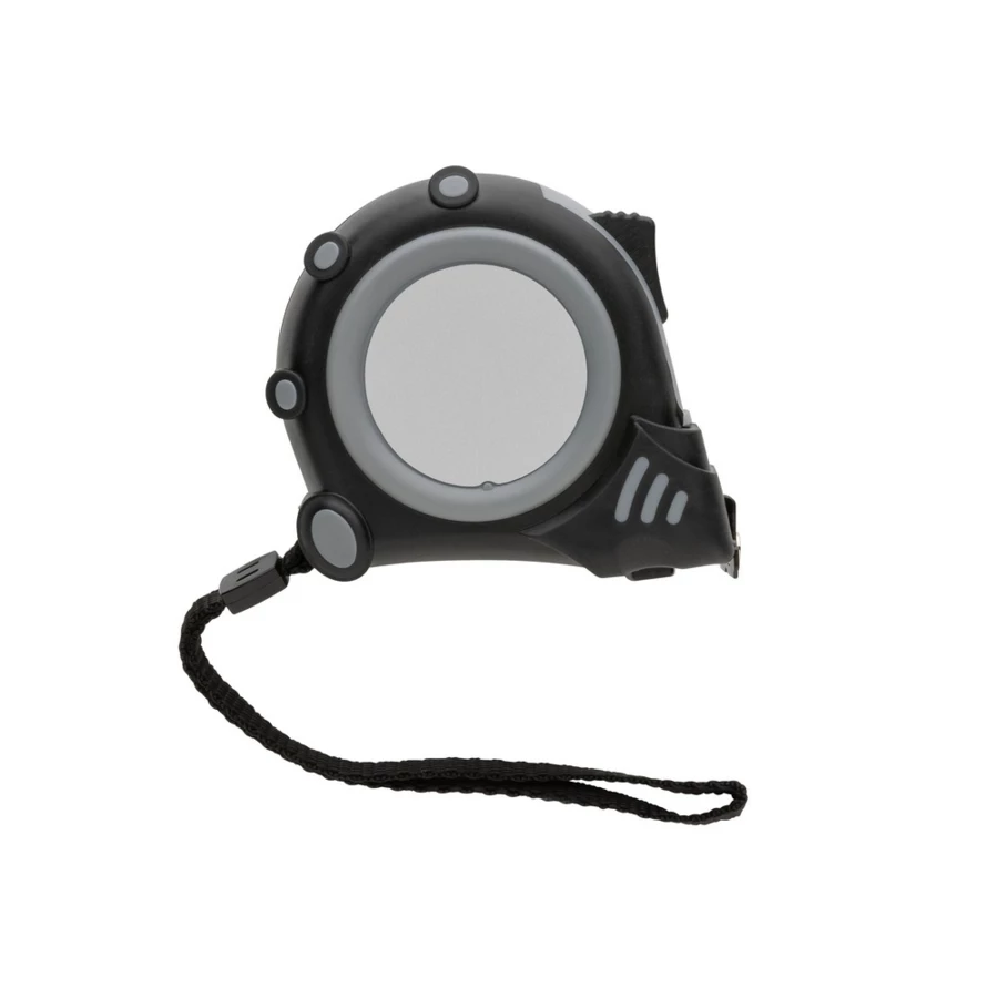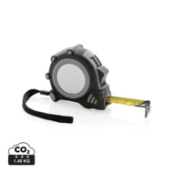 Miara 5 m, taśma o szerokości 19 mm z haczykiem i magnesami, przycisk blokady, wykonana z ABS pochodzącego z recyklingu z certyfikatem RCS (Recycled Claim Standard) który gwarantuje, że wykorzystane materiały pochodzą z recyklingu, całkowita zawartość materiału z recyklingu obliczona w oparciu o wagę całkowitą przedmiotu: 15%, uchwyt z TPR, w pudełku z papieru kraftowego z certyfikatem FSC® mix (Forest Stewardship Council), ślad węglowy produktu: 0,85 kg CO2