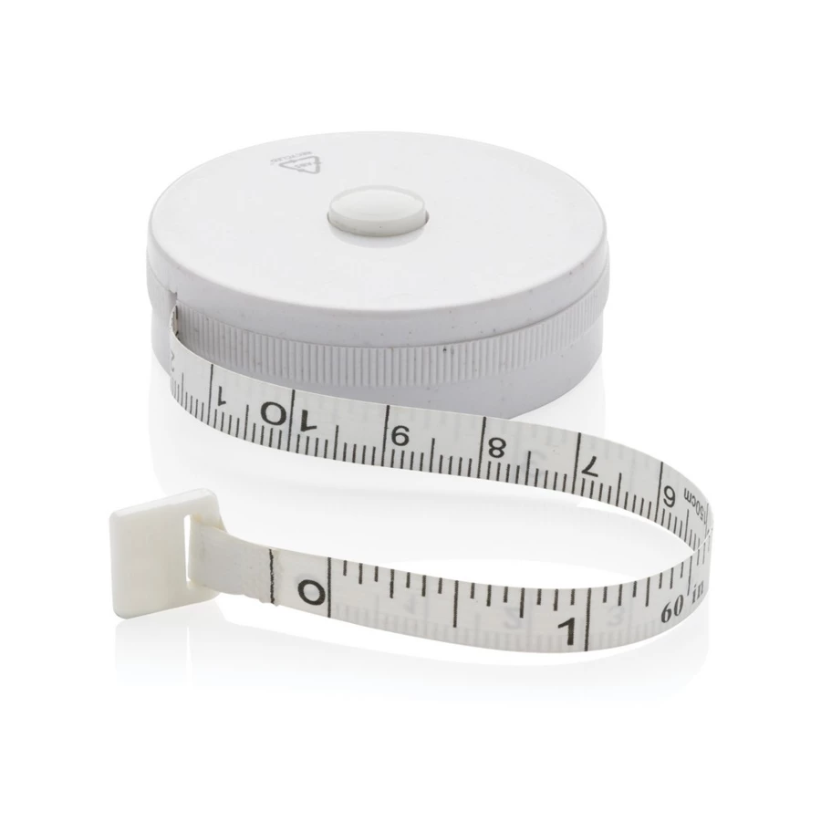 Miara do ciała 1,5 m/60”, taśma o szerokości 8 mm, przycisk stop, wykonana z ABS z recyklingu z certyfikatem RCS, włókna szklanego i bambusa z certyfikatem FSC®, całkowita zawartość materiałów z recyklingu obliczona w oparciu o wagę całkowitą przedmiotu: 64%, w pudełku z papieru kraftowego z certyfikatem FSC® mix, ślad węglowy produktu: 0,06 kg CO2