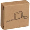Stalowa miarka o długości 100 cm w kwadratowej obudowie z kolorowego plastiku, zawieszona na praktycznym breloku.
