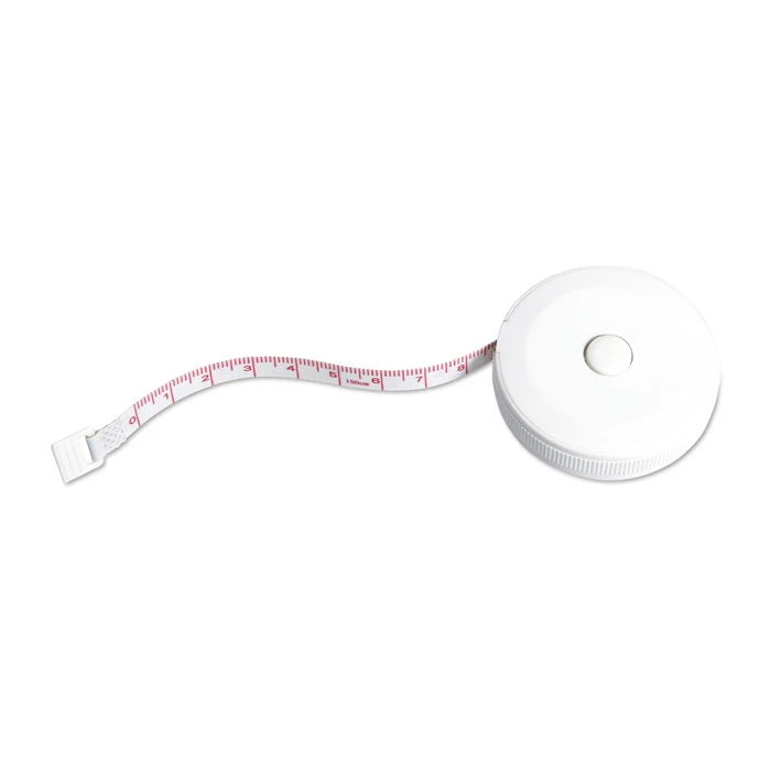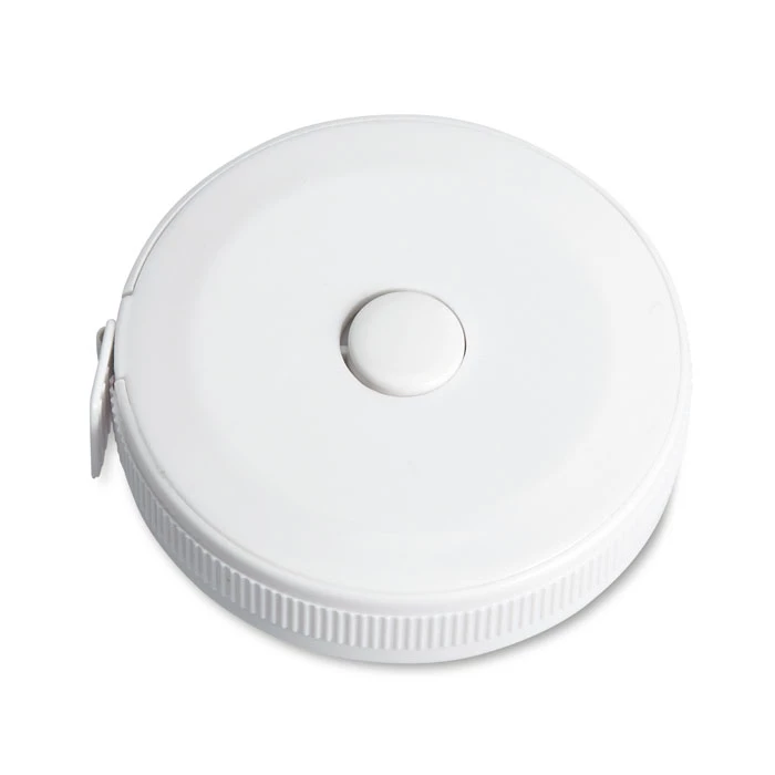 Jednometrowa okrągłą miarka z przyciskiem. Wykonana z ABS-u.