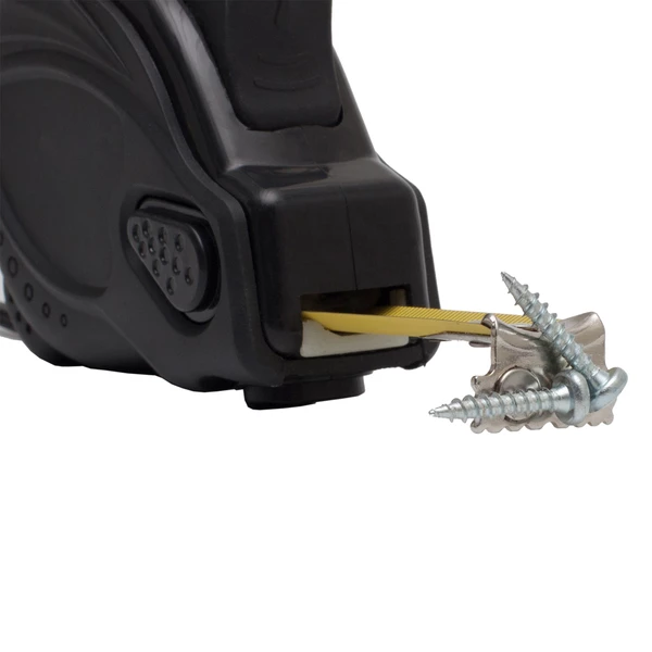 Zwijana miarka 5 m wykonana z stali węglowej i plastiku ABS. Skala w cm i calach. Wyposażona w zaczep do paska. Końcówka taśmy z magnesem.