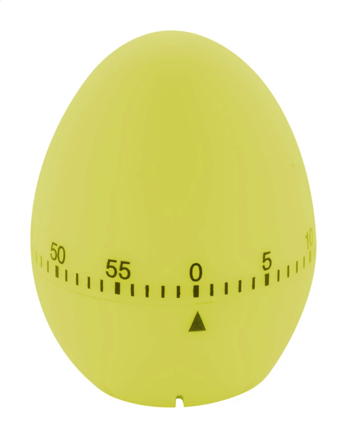 Plastikowy, kuchenny minutnik o kształcie jajka, odlicza 60 minut.