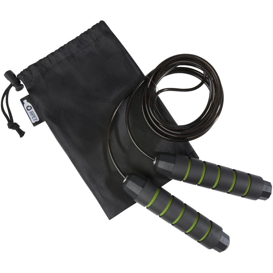 Profesjonalna skakanka dla dorosłych z ergonomicznie ukształtowanymi uchwytami z miękkiej pianki, zapewniającymi pewny i wygodny chwyt podczas treningu. Długość liny wynosi 310 cm, co pozwala na łatwe skakanie dorosłym o wzroście do 195 cm. Lina ma regulowaną długość i wbudowane wysokiej jakości, obracane o 360°, szybkie łożysko kulkowe, które zapewnia płynny obrót bez wysiłku, zapobiegając plątaniu się liny. Dostarczana z woreczkiem do przechowywania (21 x 14 cm) wykonanym z plastiku PET z recyklingu, który oferuje doskonałą powierzchnię do nadruku logo.