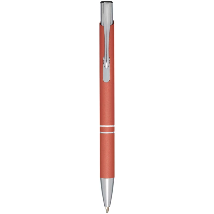 Gumowa powłoka sprawia, że długopis jest miękki w dotyku, a po wygrawerowaniu laserem ukazuje się srebrna warstwa spodnia. Długopis automatyczny z czarną gumową powłoką i chromowanymi wykończeniami oraz czarną górą z plastiku ABS. Bogaty i popularny asortyment Moneta jest dostępny w wielu różnych stylach i wykończeniach.