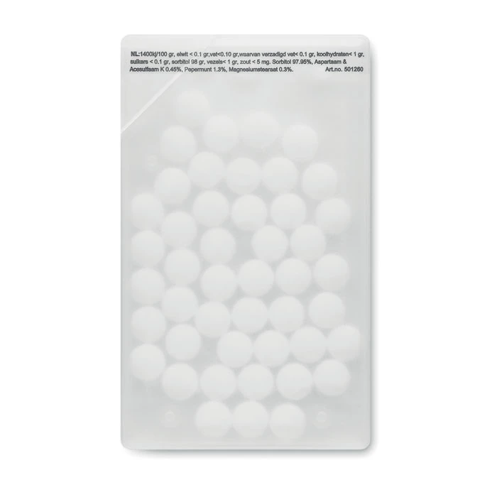 Miętówki w dozowniku w kształcie karty kredytowej. Pojemność: 8 g.