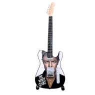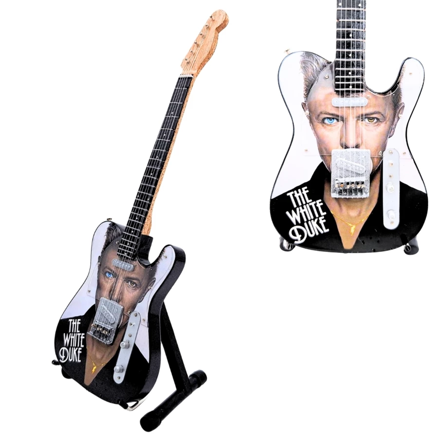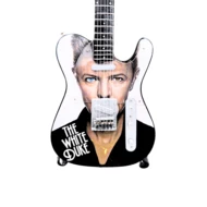 Kolekcjonerska mini gitara inspirowana stylem Davida Bowiego – ikony muzyki, mody i kultury popularnej. Wykonana z drewna mahoniowego w skali 1:4. W komplecie stojak plastikowo-metalowy do postawienia gitary. To doskonały pomysł na prezent dla fanów Davida Bowiego i miłośników klasyki rocka.