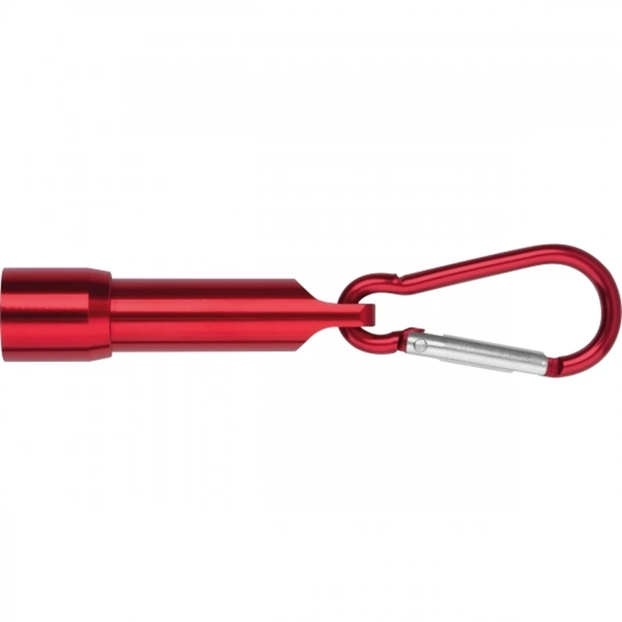 Mini latarka z karabińczykiem wykonana z recyklingowego aluminium. W zestawie 4 baterie guzikowe.