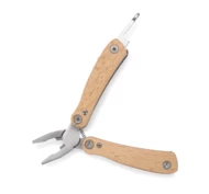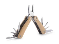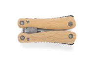 Narzędzie wielofunkcyjne FORT to gadżet w kieszonkowym rozmiarze, wykończony drewnem. Funkcje: kombinerki, przecinak, nóż, śrubokręt płaski i krzyżowy, pilnik, piła, otwieracz do butelek i puszek. W komplecie znajduje się również czarny, materiałowy pokrowiec na narzędzie.