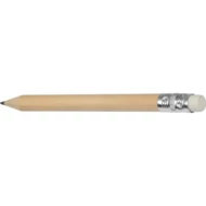 Mały ołówek z białą gumką do zmazywania, zatemperowany.