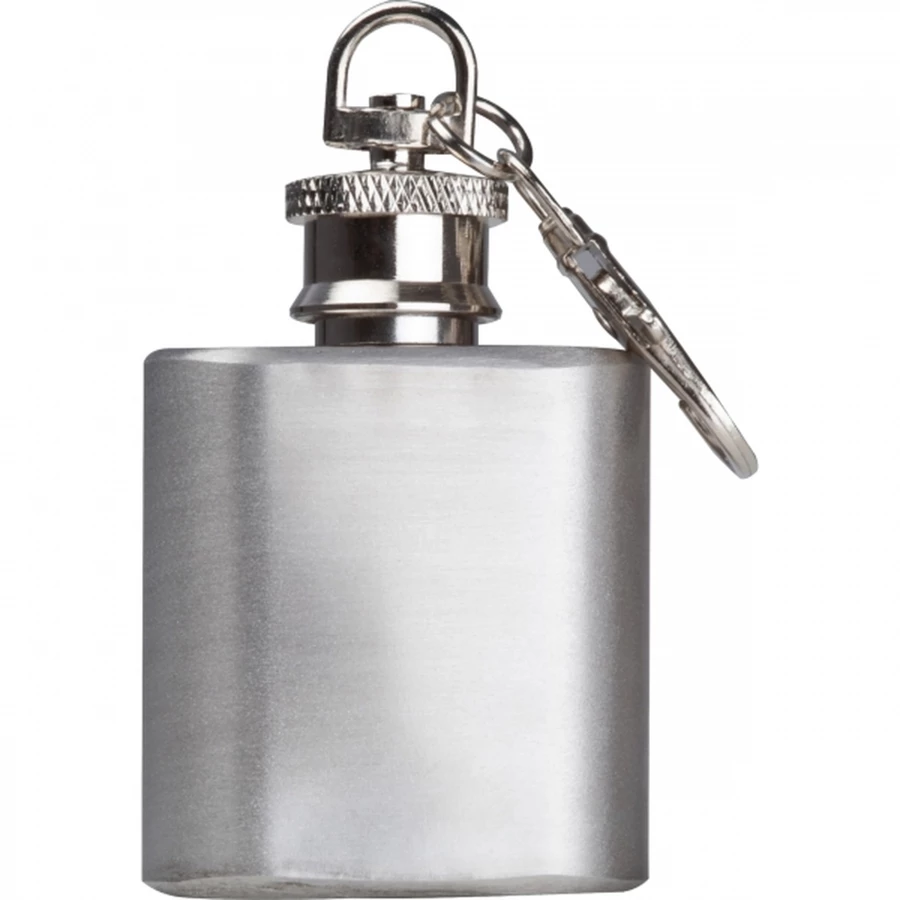 Mini piersiówka, ze stali nierdzewnej, o pojemności 30 ml, z zawieszką do kluczy.