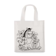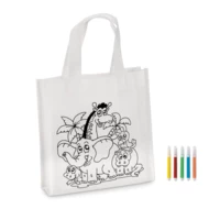 Mini torba na zakupy do kolorowania, w zestawie z 5 mazakami. Materiał nonwoven 80 gr/m².