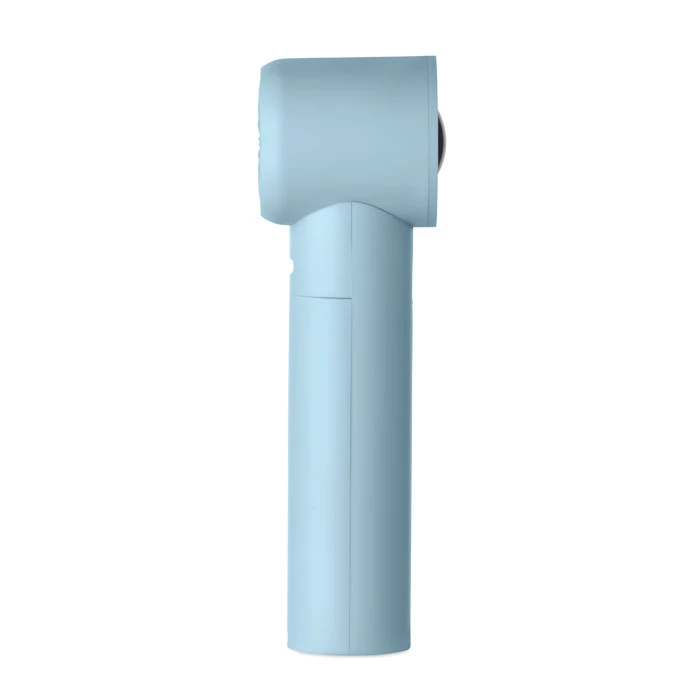 Mini wentylator ręczny z tworzywa ABS z wyświetlaczem i 5 ustawieniami prędkości. Zawiera wymienny akumulator litowy o pojemności 2600 mAh.