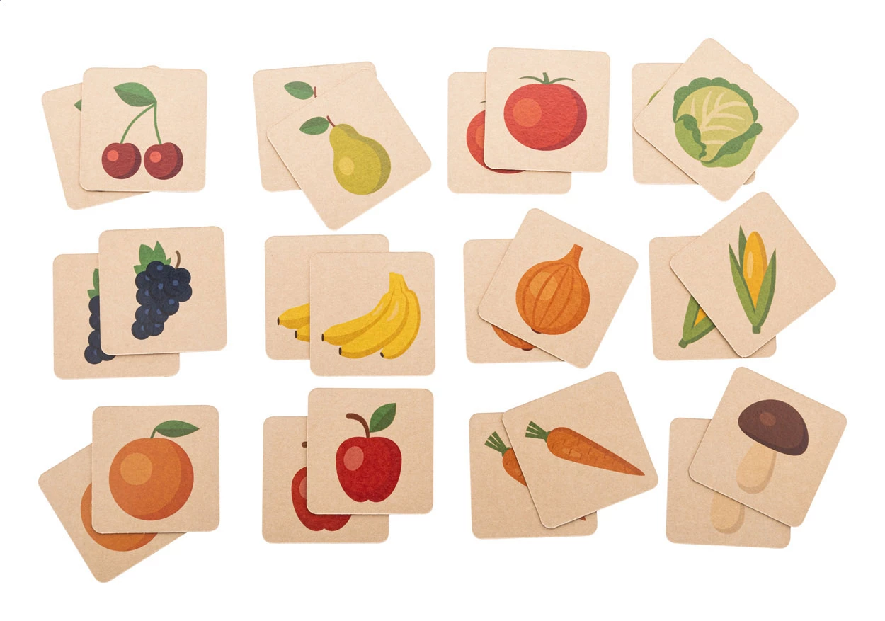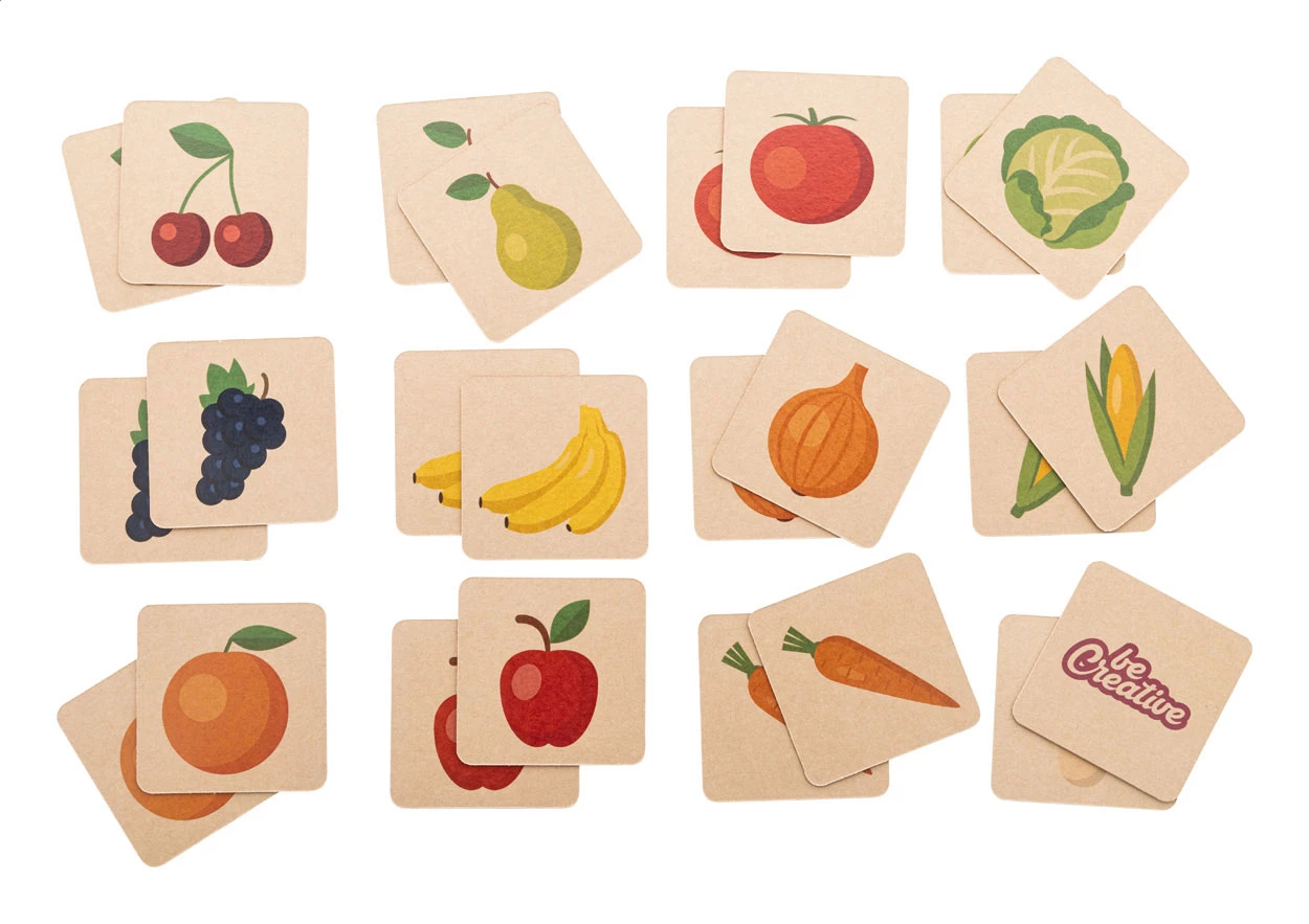 Gra memory z papieru kraft z motywami tematycznymi w personalizowanym pudełku z papieru kraft. Z 24 kafelkami (55x55 mm). Cena obejmuje full kolorowy nadruk na odwrocie wszystkich kafelków i pudełko z nadrukiem w full kolorze. Min. ilość: 100 szt.