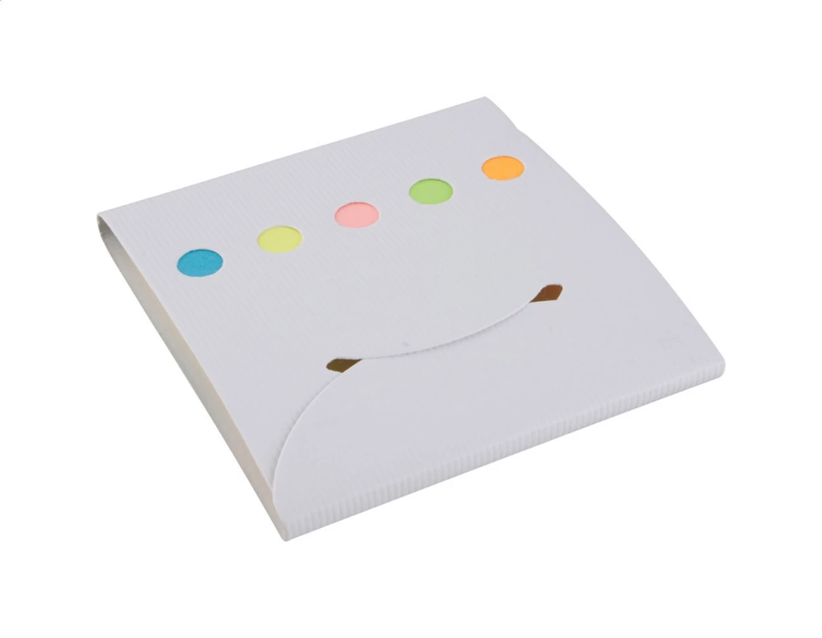25 szt.dużych i 125 szt. małych karteczek samoprzylepnych w 5 różnych kolorach.