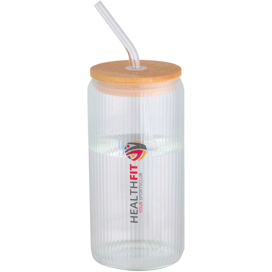 Słoik ze szkła borokrzemowego ze szklaną słomką i bambusową pokrywką. Słoik ma unikalną żebrowaną konstrukcję wewnątrz i gładką powierzchnię zewnętrzną, idealną do nadruku logo. Bambus, z którego wykonano pokrywkę, pochodzi ze zrównoważonych upraw, prowadzonych z poszanowaniem środowiska naturalnego i w duchu odpowiedzialności społecznej. Dostarczany w pudełku upominkowym wykonanym z kartonu z recyklingu. Pojemność: 650 ml.