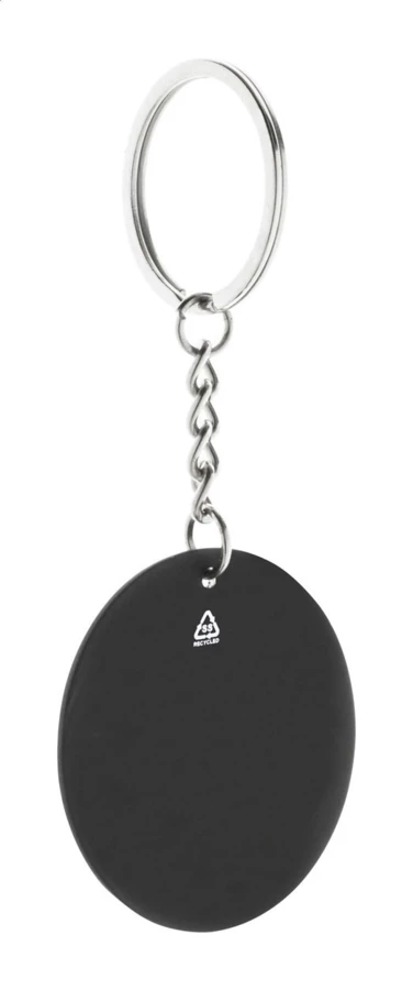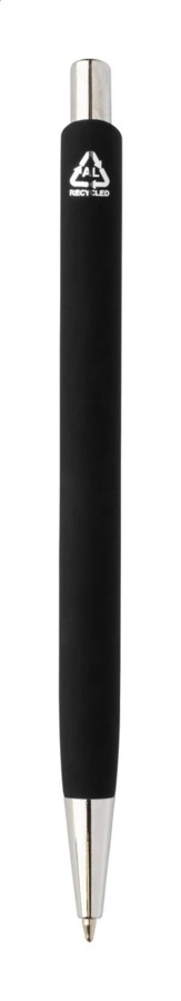 Zestaw upominkowy składający się z 2 części w czarnym papierowym pudełku. Zawiera długopis z recyklingowanego aluminium z gumowanym wykończeniem i niebieskim wkładem oraz brelok ze stali nierdzewnej z recyklingu z gumowanym wykończeniem. Oba przedmioty mają specjalną powłokę do grawerowania laserowego lustrzanego.