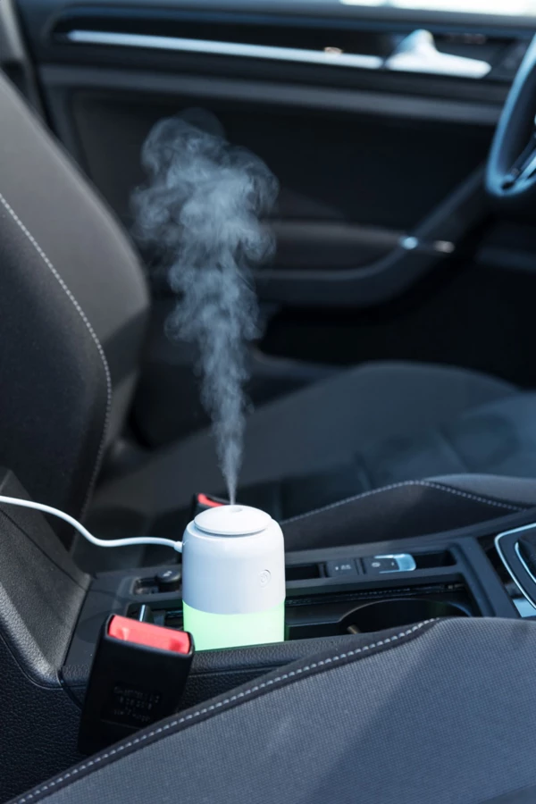 Plastikowy nawilżacz biurkowy z 1 wielokolorowym światłem LED. W zestawie kabel zasilający USB, 200 ml.