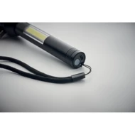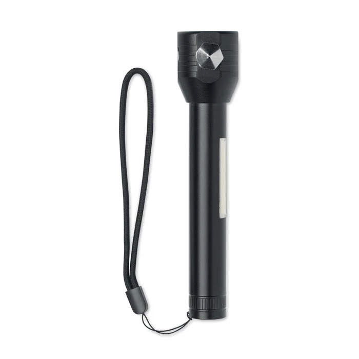 Aluminiowa latarka 3 w 1 z młotkiem awaryjnym i przecinakiem do pasów bezpieczeństwa. Posiada światło COB z boku i z przodu. W zestawie magnes i pasek na rękę. Wbudowany akumulator 500 mAh w zestawie.