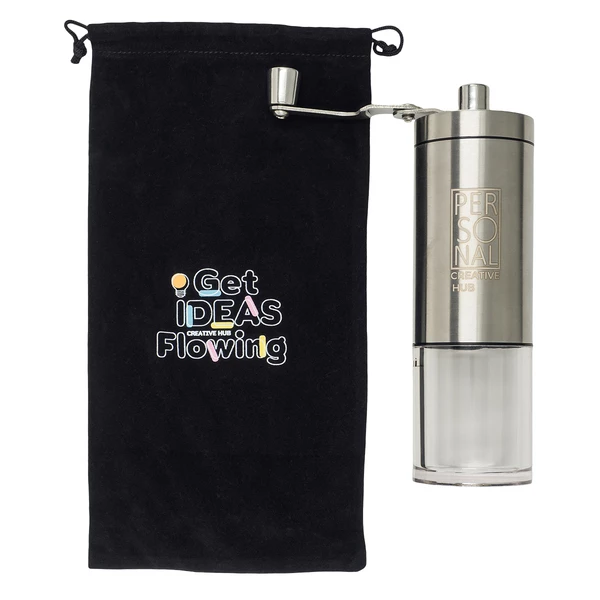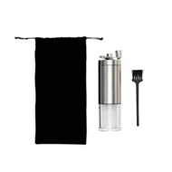 Młynek do kawy ze składaną rączką. Wyposażony w ceramiczne żarna. Możliwość regulacji grubości mielenia ziaren. Ręczne mielenie pozwala wydobyć naturalny aromat i smak kawy. W zestawie znajduje się szczoteczka do czyszczenia żaren oraz aksamitny woreczek, do którego można spakować młynek i zabrać go ze sobą. Pojemność zbiorniczka ok. 60ml.