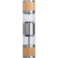 Ręczny młynek do soli i pieprzu wykonany z drewna bambusowego i stali nierdzewnej, z wytrzymałym ceramicznym mechanizmem mielącym.