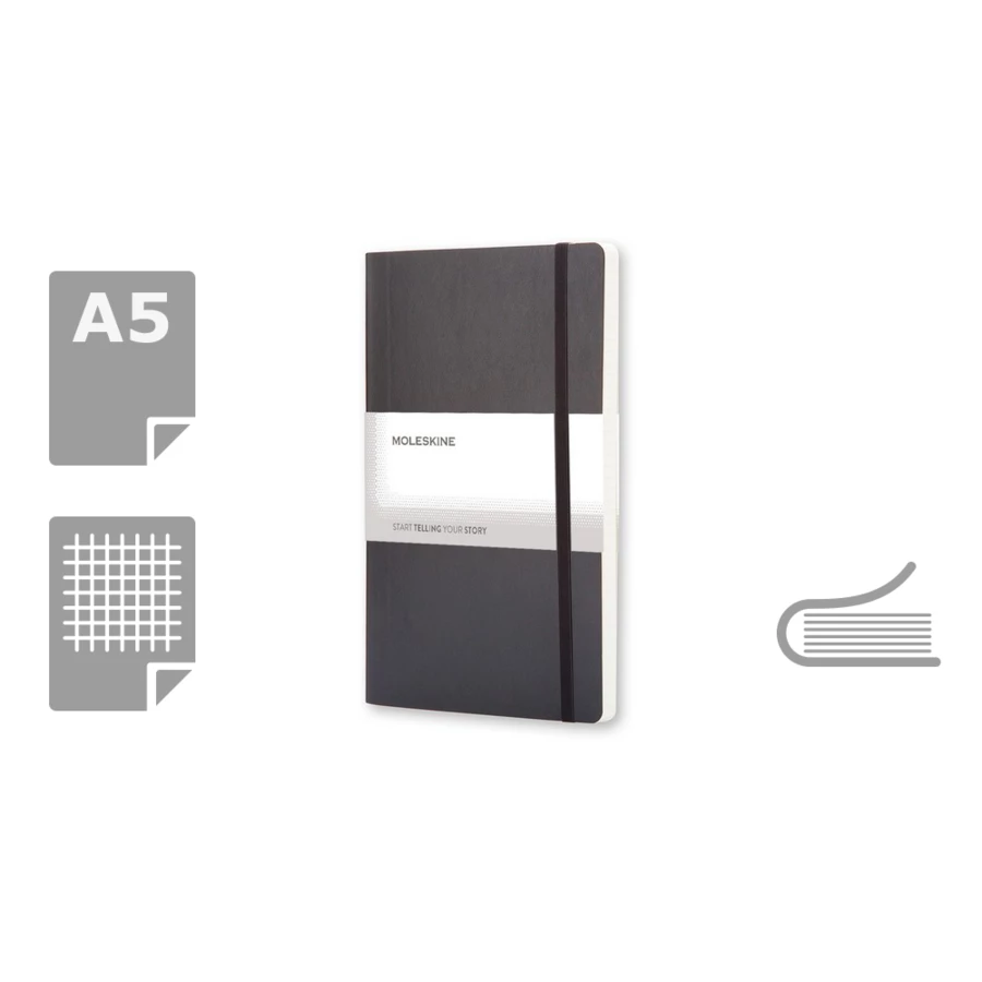 Notatnik duży (ok. A5, large) MOLESKINE, miękka okładka, 192 strony w kratkę, kieszeń wewnętrzna, zakładka i elastyczna opaska do zamykania