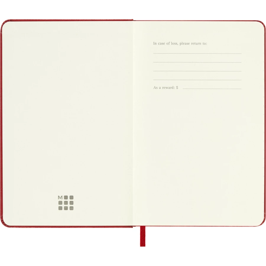 Notatnik kieszonkowy (ok. A6, pocket) MOLESKINE, twarda okładka, 192 strony w linie, kieszeń wewnętrzna, zakładka i elastyczna opaska do zamykania