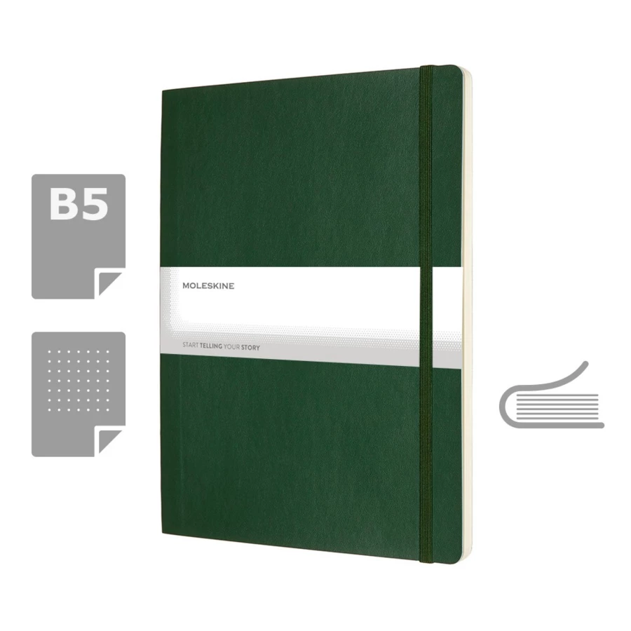 Notatnik XL (ok. B5) MOLESKINE, miękka okładka, 192 kropkowane strony, kieszeń wewnętrzna, zakładka i elastyczna opaska do zamykania