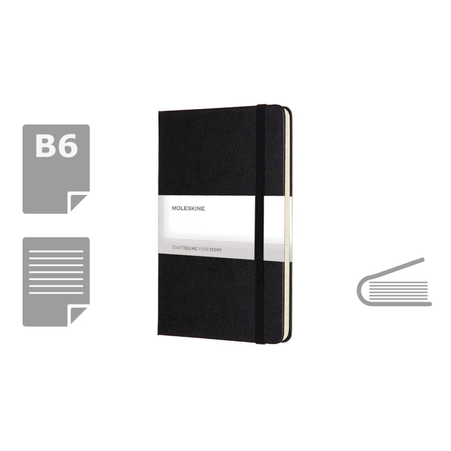Notatnik średni (ok. B6, medium) MOLESKINE, 208 stron w linie, twarda okładka, kieszeń wewnętrzna, zakładka i elastyczna opaska do zamykania