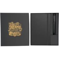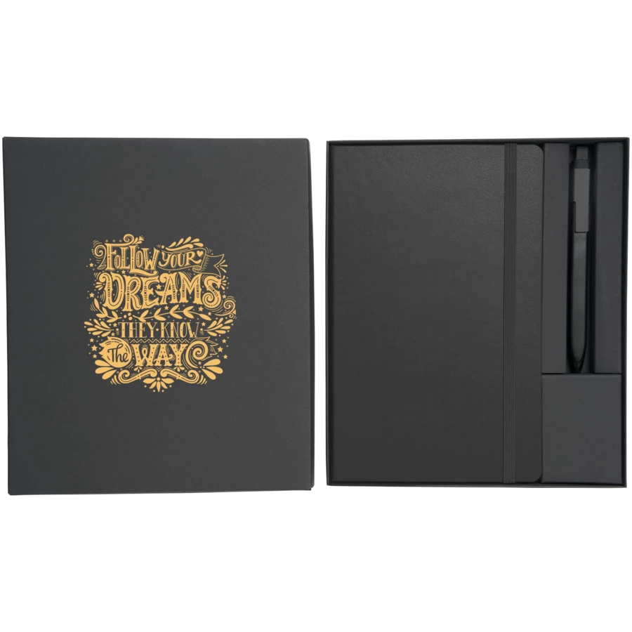 Ten zestaw upominkowy Moleskine to idealny prezent dla każdego, kto uwielbia pisać, rysować lub robić notatki. Zestaw zawiera duży notatnik firmy Moleskine i stylowy długopis Moleskine, co czyni go najlepszym pakietem dla każdego, kto chce przenieść swoje codzienne notatki i kreatywność na wyższy poziom. Duży notatnik (10715100) firmy Moleskine zawiera 240 stron w linie w kolorze kości słoniowej, idealnych do zapisywania myśli, pomysłów i list. Twarda okładka notesu stanowi trwałą, ochronną barierę dla notatek, a elastyczne zamknięcie zapewnia ich bezpieczeństwo. Notatnik ma również rozszerzalną wewnętrzną kieszeń, co ułatwia przechowywanie dodatkowych notatek, wizytówek i innych drobnych przedmiotów. Długopis (10735000) firmy Moleskine to nowoczesne i funkcjonalne narzędzie do pisania, które jest idealnym uzupełnieniem notesu Moleskine. Długopis posiada wkład z czarnym atramentem, zapewniający czystą i precyzyjną linię, a jego specyficzna konstrukcja umożliwiająca przypięcie do boku notesu sprawia, że jest to idealne narzędzie do codziennego użytku. Niezależnie od tego, czy chcesz nagrodzić pracownika, obdarować ukochaną osobę, czy po prostu sprawić sobie przyjemność, zestaw upominkowy firmy Moleskine z pewnością zrobi na każdym wrażenie.