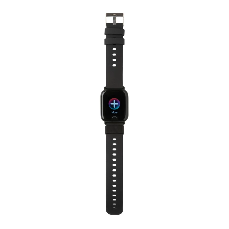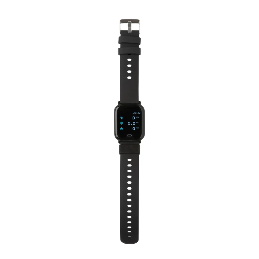 Monitor aktywności Fit Watch 1,3",BT 5.0, wykonany z ABS z recyklingu, pasek wykonany z TPE z recyklingu, posiada certyfikat RCS (Recycled Claim Standard), całkowita zawartość materiału z recyklingu obliczona w oparciu o wagę całkowitą przedmiotu: 31%, funkcje odbierania połączeń, licznika kroków, śledzenia tętna, mierzenia ciśnienia krwi, pomiar czasu snu, kalendarz, powiadomienia z aplikacji, wodoodporność i pyłoszczelność IPX 67, kompatybilny z Androidem 4.4 oraz IOS 8.0 lub nowszymi, czas czuwania do 15 dni, czas pracy do 5 dni, ładowarka klipsowa w zestawie, w pudełku kraftowym z certyfikatem FSC® mix, nie zawiera PVC, ślad węglowy produktu: 0,73 kg CO2