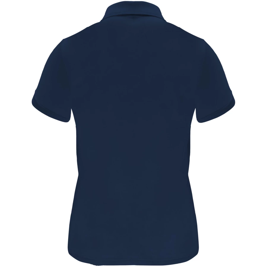 Techniczna koszulka polo z krótkim rękawem dla kobiet. Dzianinowy kołnierzyk z zapięciem na trzy guziki. Dopasowany krój. Oddychająca, łatwa do prania i suszenia tkanina. Usuwalna metka. Tkanina techniczna. Oddychająca tkanina.