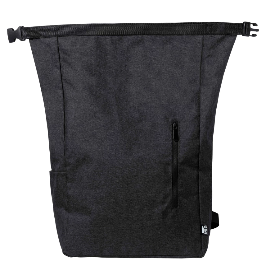 Wodoodporny, zwijany plecak z RPET z boczną kieszenią, przednią kieszenią zapinaną na zamek, wyściełanym tyłem i paskami na ramiona. Z charakterystyczną metką RPET. Poliester 300D RPET.