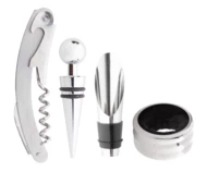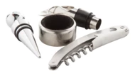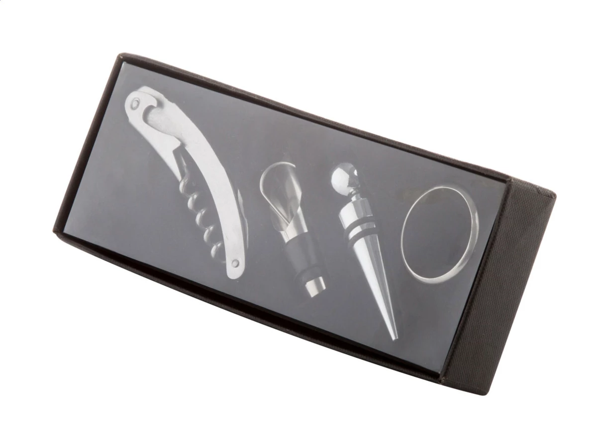 Zestaw do wina z 4 akcesoriami w czarnym pudełku prezentowym.
