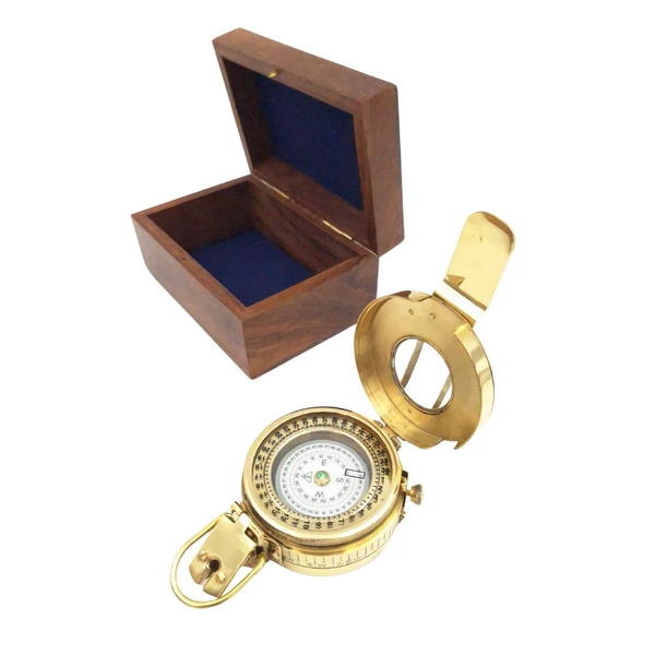 Mosiężny kompas dla inżyniera, geodety, żołnierza w pudełku drewnianym - CA32/2.5