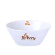 Porcelanowa miseczka wykonana w wysokiej klasy porcelany. Rozszerzające się ku górze ścianki o stożkowym kształcie umożliwiają nanoszenie bardzo dużych nadruków reklamowych. Idealna do różnego rodzaju płatków śniadaniowych.
