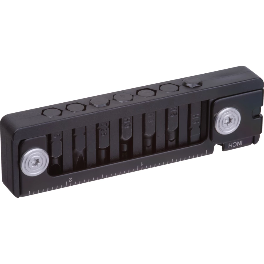 Multitool ze stali nierdzewnej wyposażony w klucze sześciokątne H3/H4/H5/H6, bit T25, wkrętak krzyżakowy PH2, płaski oraz linijkę. Kompaktowy i wielofunkcyjny.