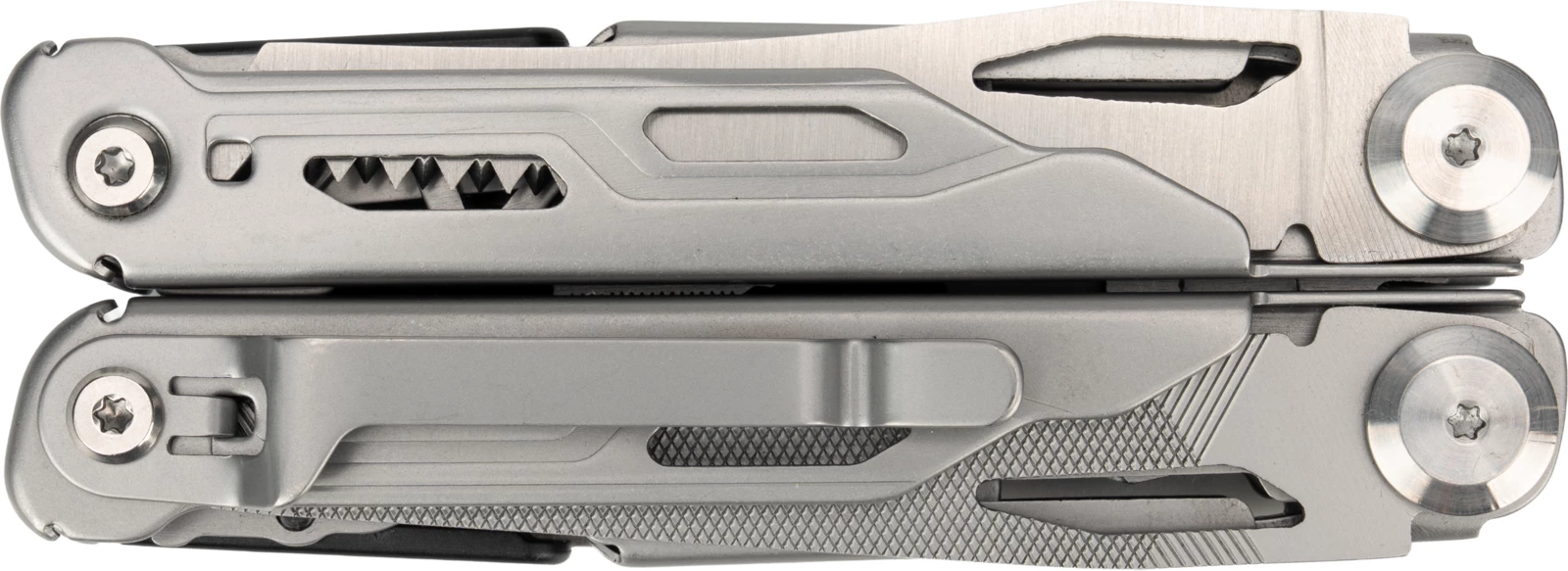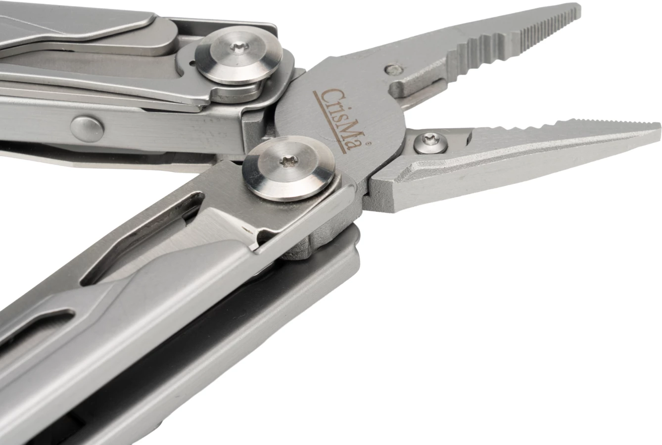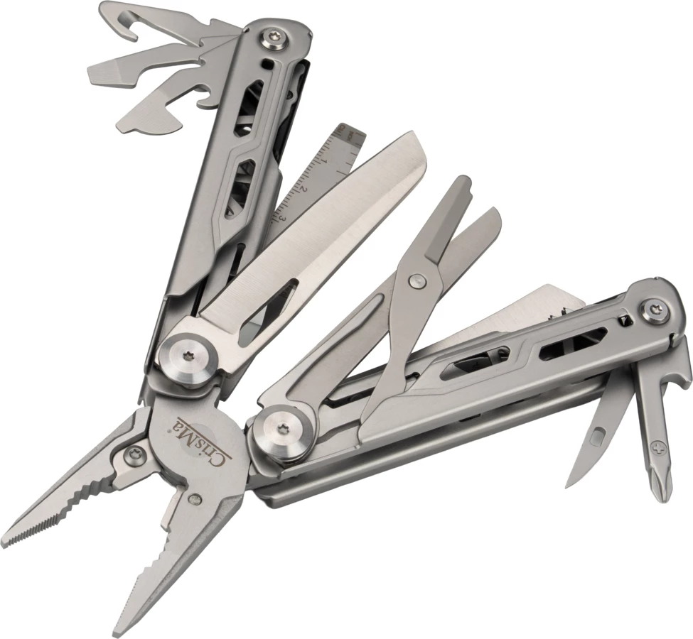 Multinarzędzie 17 w 1, ze stali nierdzewnej, wyposażone między innymi w: szczypce, nóż, piłke, nożyczki, śrubokręt itp. Posiada praktyczny klips, dzięki któremu można je przymocować do paska.