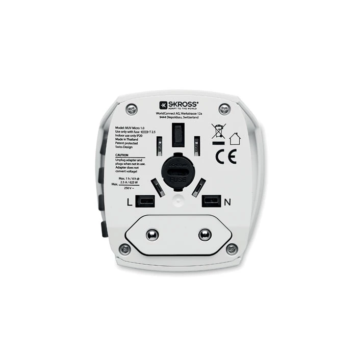 Uniwersalny podróżny adapter SKROSS. Odpowiedni w Europie, USA / Japonii, Australii / Chinach. 2-biegunowy, bez uziemienia. Spełnia wszystkie międzynarodowe normy i normy dotyczące bezpieczeństwa. Bezpieczny dla dzieci.