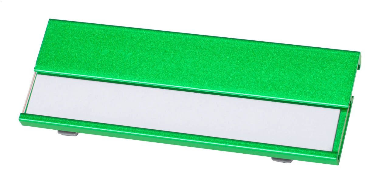 Aluminiowy imiennik z wymiennym papierem.