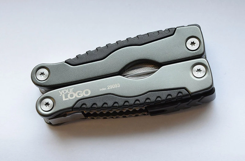 Metalowe narzędzie wielofunkcyjne zawierające w swoim składzie wszystkie potrzebne rzeczy do przeprowadzenia podstawowych prac. Przyrząd składa się z kombinerek, piłki do drewna, dwóch otwieraczy (do konserw i kapsli), pilnika do drewna i metalu, śrubokręta płaskiego, śrubokręta krzyżakowego i nożyków o ostrzach płaskim i ząbkowanym. Logo wygrawerujemy na powierzchni narzędzia.